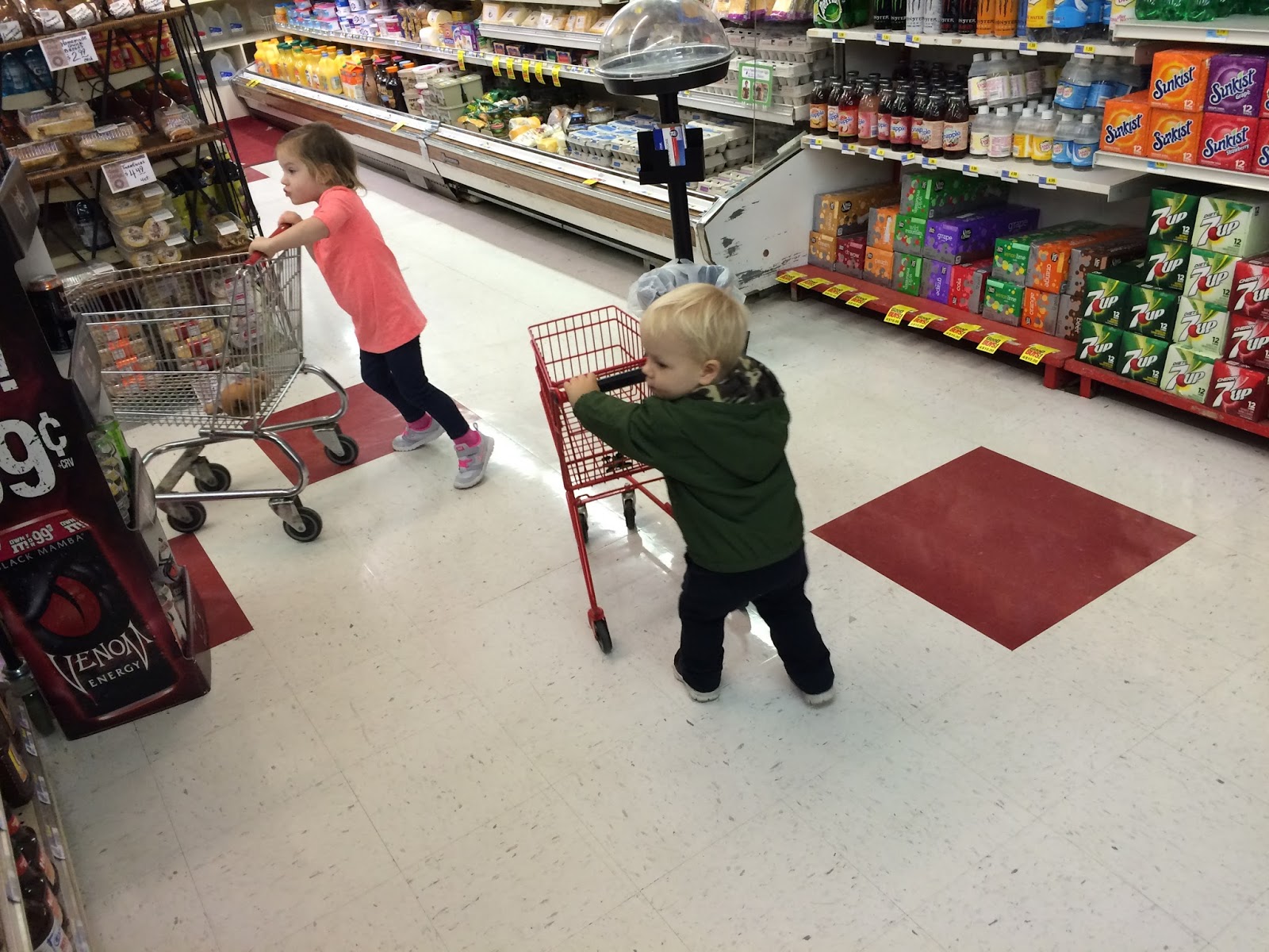 We were some of the only people in the store, we only needed a bag of chips, and I guess I was feeling especially patient because I gave in to the request for two little carts.